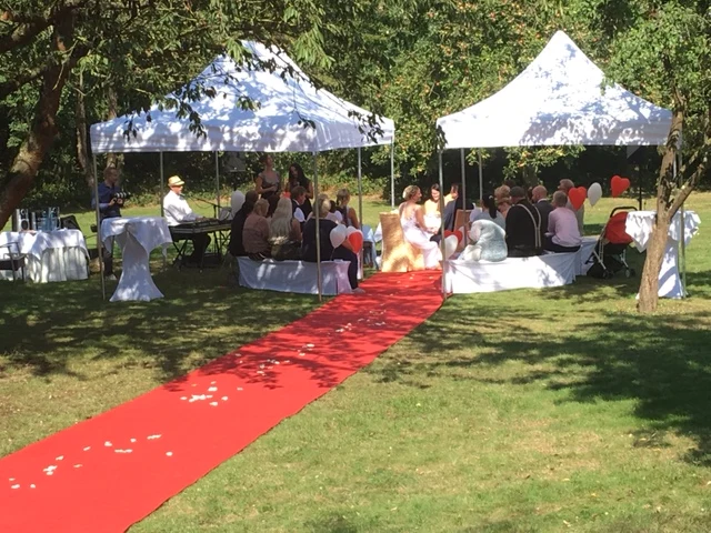 Von unseren Gästen wurde immer wieder der Wunsch geäußert die standesamtliche Hochzeit im Naturraum der Sophienhöhe zu veranstalten. Beliebte Standorte, um sich das Ja-Wort für ein gemeinsames Leben zu geben, waren am Waldrand oder unter den Obstbäumen. Der rote Teppich war ein beliebtes Accessoire.